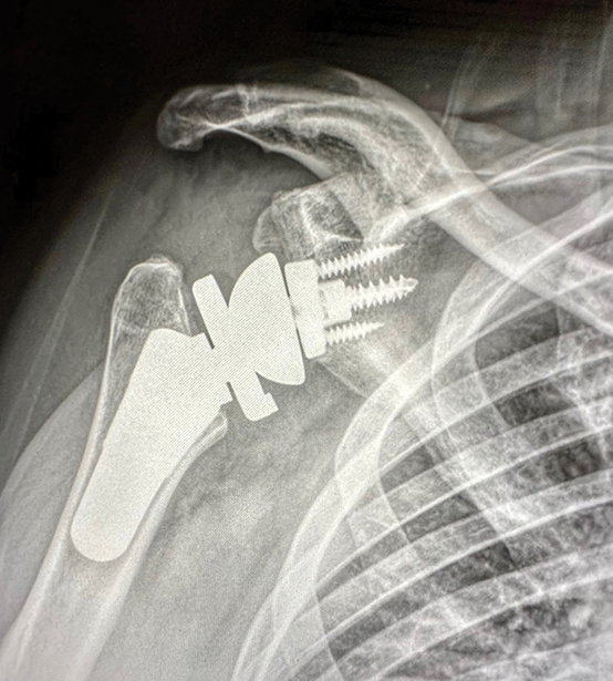 Loosening of the glenoid component, namely the glenoid baseplate, can be a substantial complication and one of the primary modes of failure in both RSA and revision RSA. Both central post and central screw fixation with or without peripheral locking screws are common designs to help minimize this problem. Post and/or screw fixation is particularly relevant in constructs with a lateralized glenoid COR where there is more stress on the implant/glenoid interface.